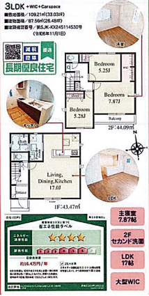 | 備考 | ZEH省エネの家、耐震等級3取得! 長期優良住宅! 2Fセカンド洗面台、大型WIC! |